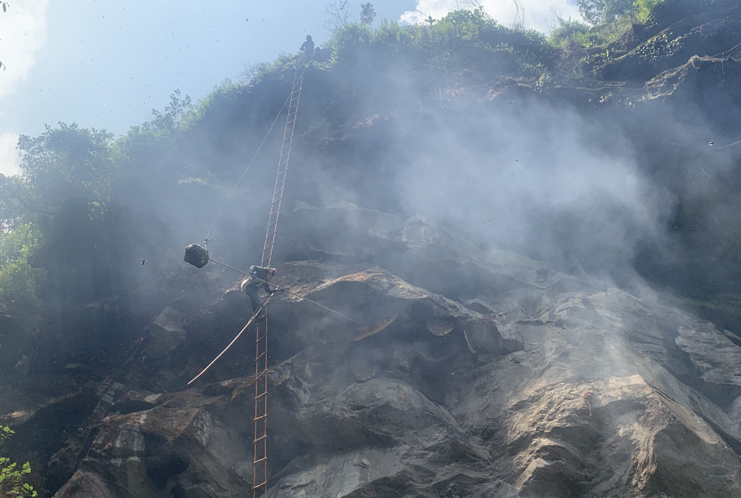 अनि पूजा सुरु हुन्छ । सिदिङबाट लिएर गएको भेडा बली दिइन्छ । त्यसपछि पर्याङ (डोरीको भर्याङ) बोकेर भिरको सिरानतिर लाग्छन्, भीरौटेहरु । तल मर्दी खोला सुसाइरहेको छ, त्यो भन्दा अर्को आवाजमा भुन्भुनाइरहेका हुन्छन्, भीर मौरी ।